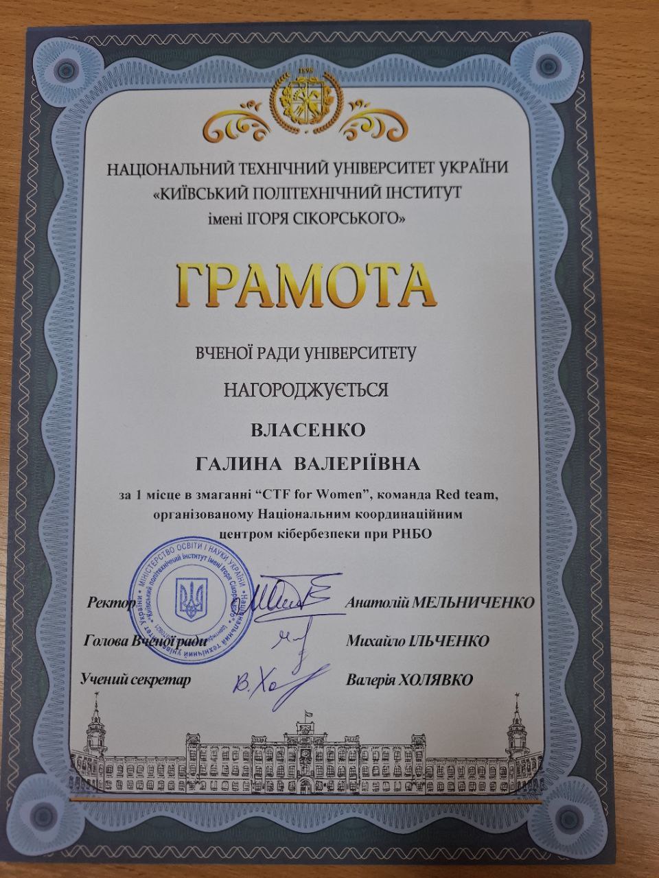Our teams dcua and dcua-girls were awarded certificates by the Academic Council of KPI for their outstanding achievements at DEADFACE CTF 2025 and CTF for Women organized by NKCC! This recognition demonstrates that persistence, teamwork, and passion for cybersecurity pay off. It is particularly rewarding to see student achievements acknowledged at the university level. Below are photos and scans of the certificates received by our teams. This is a small, yet very meaningful victory for every participant and for our entire community.